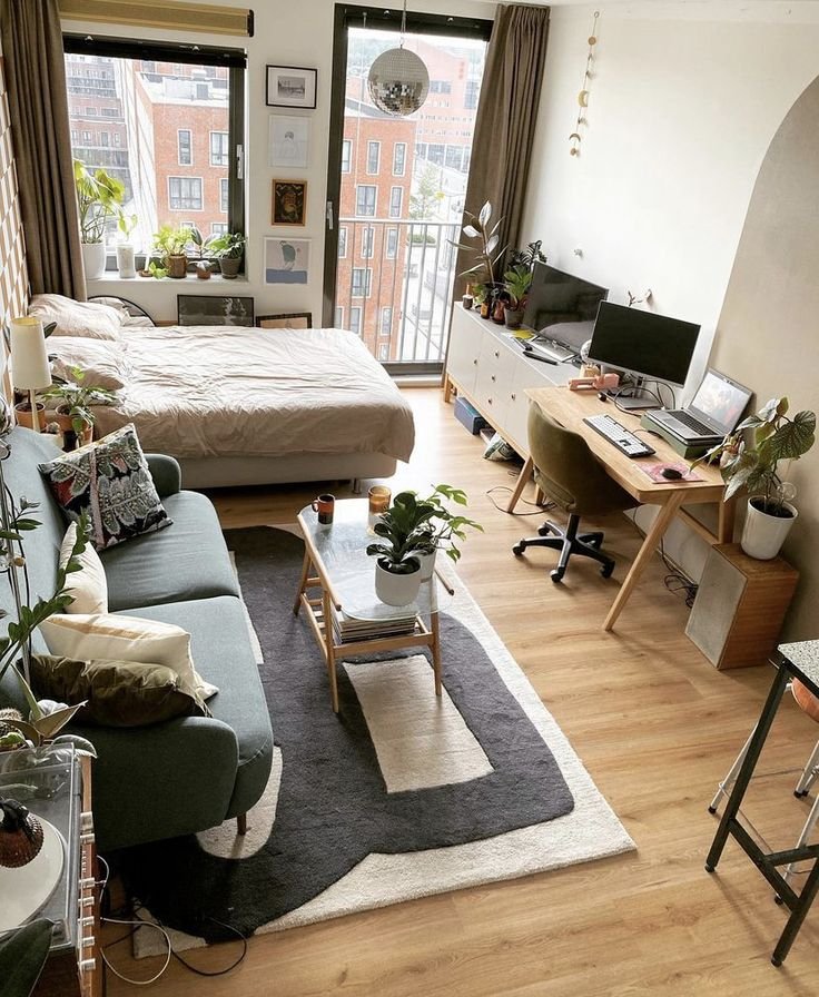 Visual Boundaries Without Walls: Open spaces are great, but they can lead to mental confusion. A strategically placed rug helps divide areas without physical barriers. For instance, placing a large, textured rug under your couch, and a hard wood flooring under your desk sets apart your “relaxation zone” from your “work zone”, even if the entire space is shared.